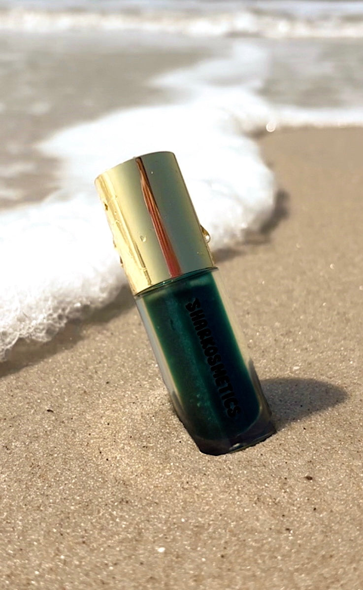 "Transform your look with Siren Scales lip gloss, featuring a stunning dark green color and an abundance of shimmer and shine. Dive into a mermaid/siren fantasy with its green apple flavor. Your lips will thank you (and maybe even sing)!"